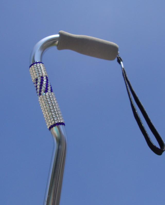 Tuxedo Plus Same Tuxedo design, with additional rows of colored crystals - shown here with multiple rows in Sapphire for a Dallas Cowboys fan. Customize your crystal Glamour Cane with a color you love! Traditional or Offset: $325