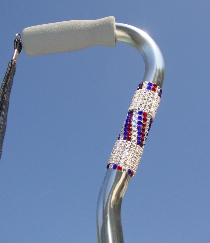 Red, Clear and Blue Crystals Swirl between rows of Swarovski Crystal Mesh for a cane that's sure to be a winner on Election Day!