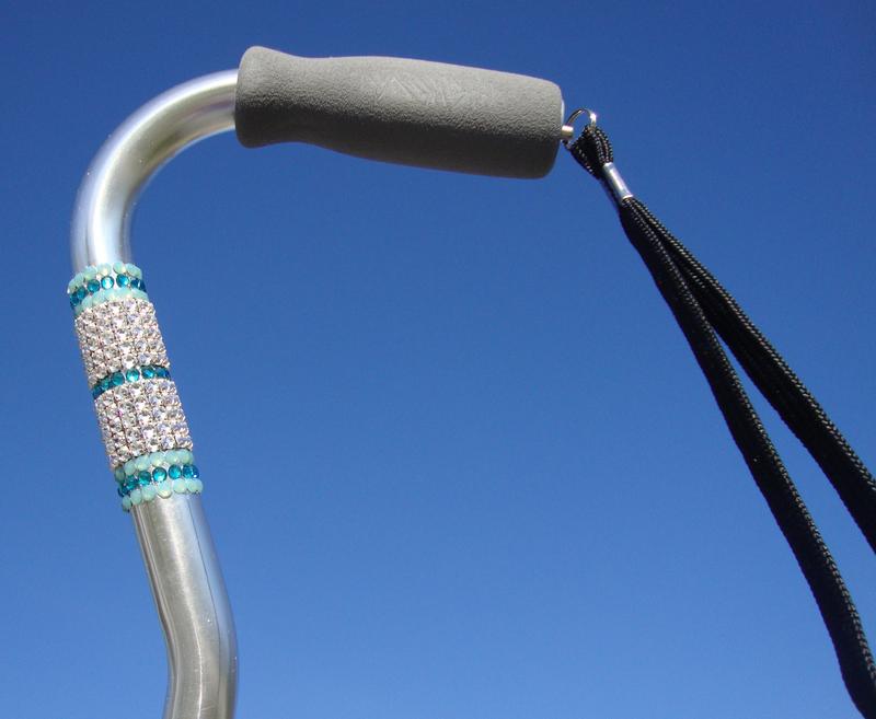 Cool Blues. Cool, restful, crystals in ocean colors alternate with clear mesh on this dual color cane. Customize this style with two colors you love or request Blue Zircon and Pacific Opal as shown.
