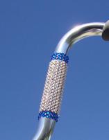 Basic Tuxedo Swarovski® Crystal Mesh, imported from Austria. Here, a tuxedo band finished with Ruby crystals - Our Tuxedo style is best for everyday use as the mesh is placed so that when you hang your cane from a tabletop or lean it against a wall, no part of the crystals are touched. Vulnerable sections of the cane are left clear of crystals to ensure maximum sparkle for every day! Choose any color crystal for the top and bottom rows to customize your beautiful Swarovski® Crystal Mesh Glamour Cane!